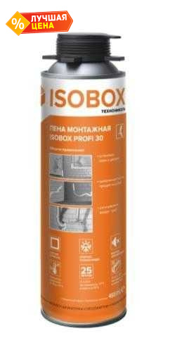 Пена монтажная ISOBOX PROFI 30 представляет собой однокомпонентный полиуретановый материал в аэрозольной упаковке. Монтажная пена отличается активным первичным расширением, повышенным объёмом выхода пены. Пена обладает хорошей адгезией к большинству строительных материалов, за исключением фторопласта, силикона и полиэтилена.